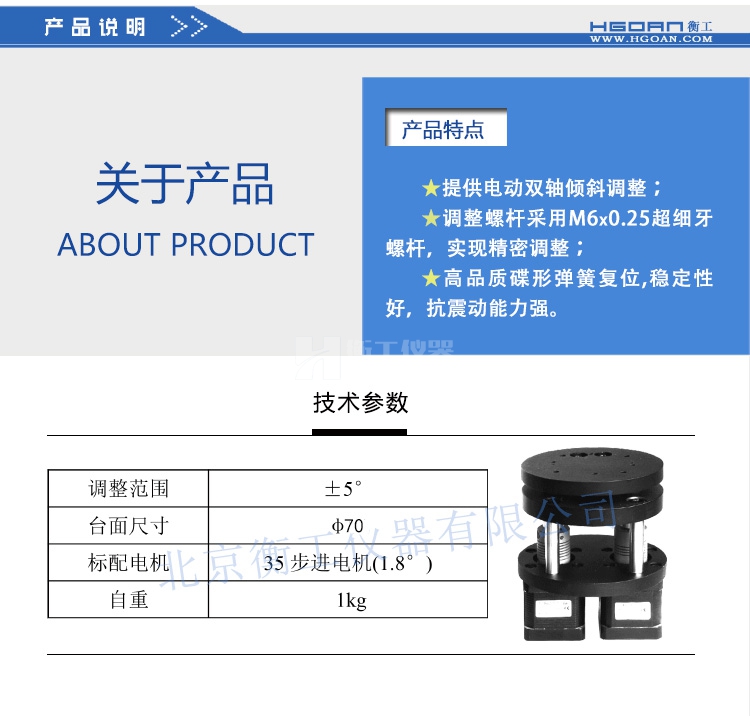 衡工2IAΦ70×119-5電動雙軸傾斜臺兩維俯仰角度微調(diào)位移臺