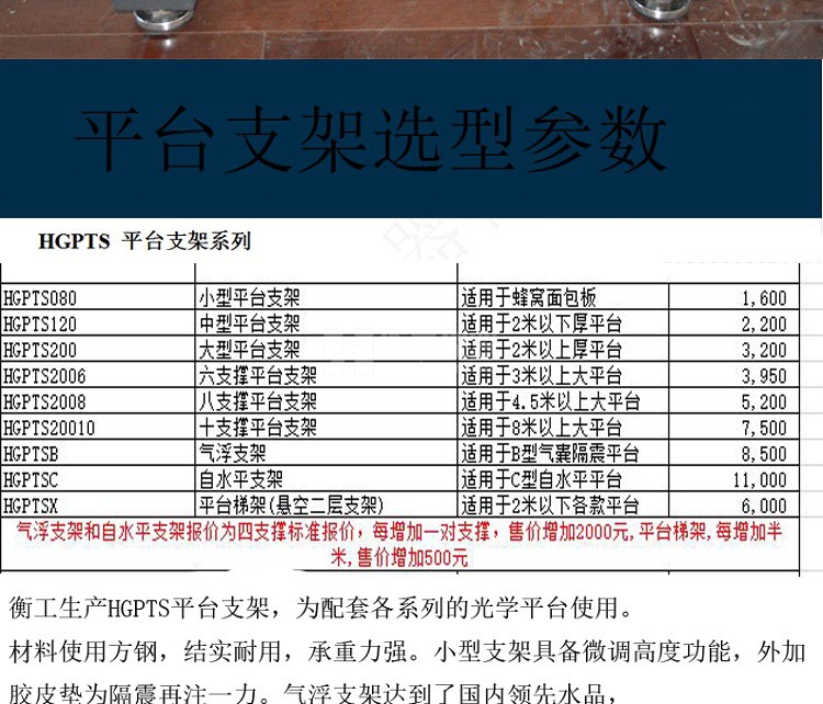 衡工光學(xué)平臺支架有多種形式,大、小型支撐,六、八、十支撐可購買,可定制。