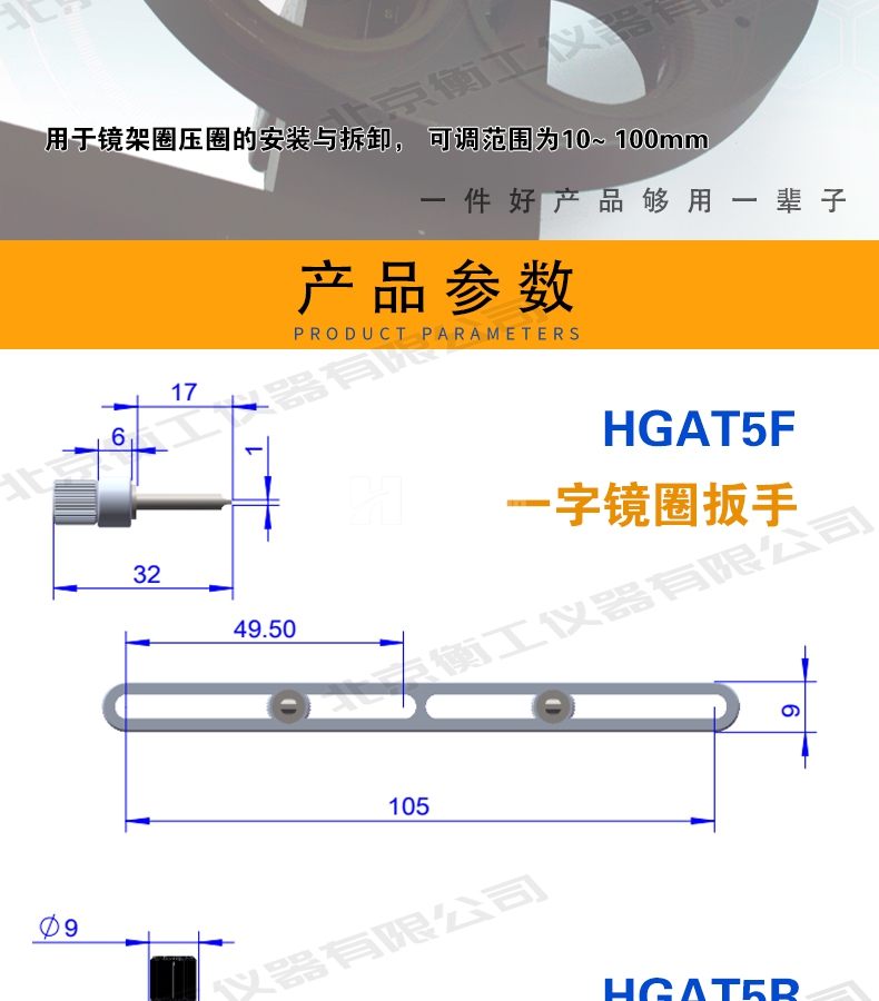 HGAT5鏡圈扳手用于鏡架圈壓圈的安裝與拆卸,可調(diào)范圍為10—100mm。