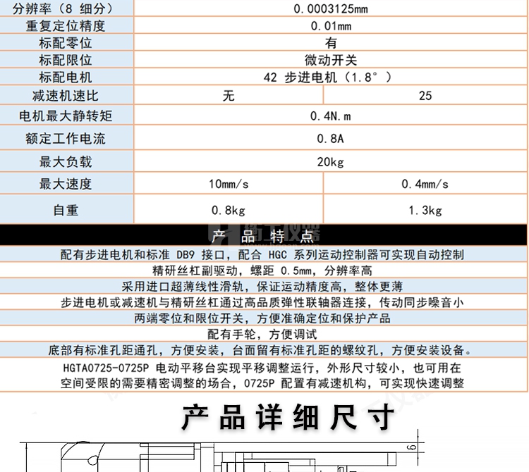 精密光學電動慢速位移臺多維電動手動組合微型實驗滑臺微調(diào)工作臺HGTA0725