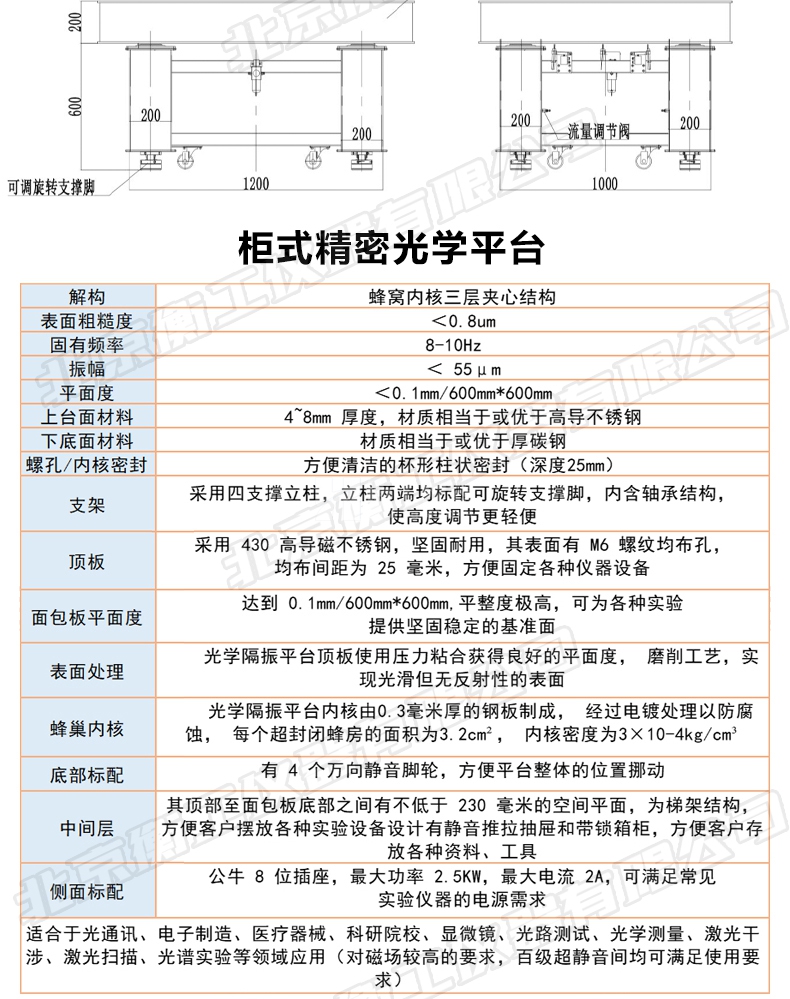 光學平臺00級大理石氣浮阻尼臺實驗蜂窩芯研究室機柜式隔振工作臺