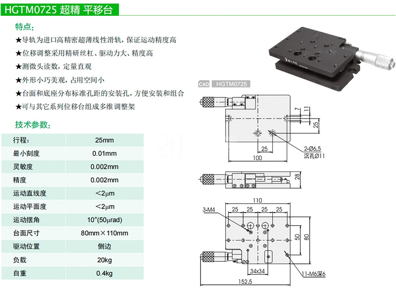 衡工高精度平移臺手動光學(xué)實驗微調(diào)位移滑臺廠家直銷規(guī)格齊全HGTM0725